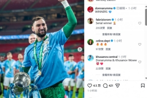 多纳鲁马也收获个人曼城生涯首个冠军,赛后他也在社媒晒出自己与冠军奖杯庆祝合影,配文写道:“冠军!”