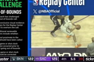GIF-特拉奥雷进攻犯规,篮网挑战,结果回放已经踩边线,挑战失败